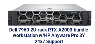 Dell-R7960-Gold-6434-RTX-A2000-HP-Anyware-Pro-3Y - Dell Precision 7960 Rack, Windows 11 Pro, Intel Xeon Gold 6434 3,7 GHz, M.2 NVME 1 TB SSD, 64 GB RAM, TPM 2.0, iDRAC9 Enterprise, NVIDIA RTX A2000, 12 GB GDDR6, 4 mDP to DP adapters, NIC´s 4x10Gb and 2x1Gb, PSU 1100W, Dell Precision Optimizer incl. ProSupport Next Business Day Onsite Service after remote diagnosis with HW-SW Support 36 Month(s) and HP Anyware Pro 3Y incl. 24x7 Global Support.